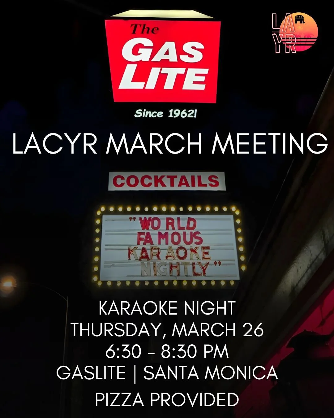 Los Angeles County Young Republicans Sign up now for the latest updates on events, politics and more! First Name Last Name Email Address Sign Up Thank you! Join LACYR Donate Register To Vote Find Your Reps Tickets Here